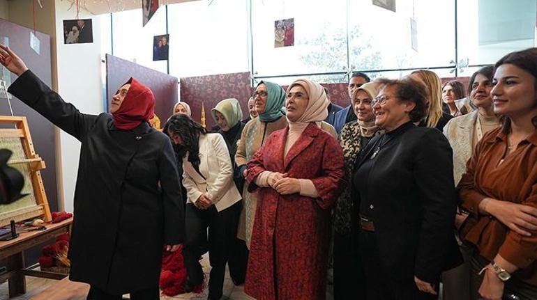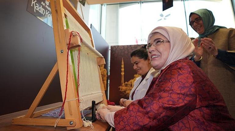 Emine Erdoğan daha sonra il başkanlığındaki "İz ve İlmek" köşesini ziyaret ederek, bir halının ilk ilmeklerini attı.
