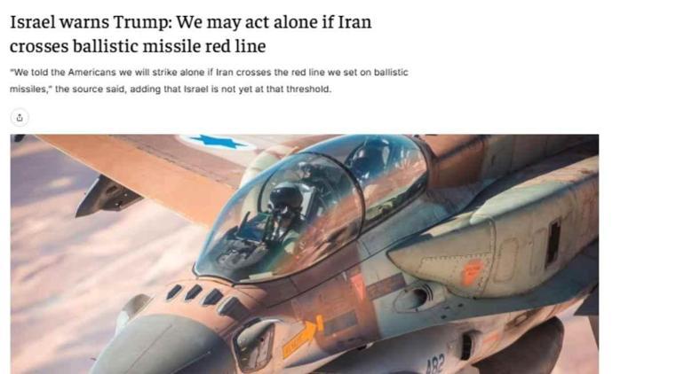 İsrail'in askeri ve siyasi liderliğinden bir kaynak, "ABD'lilere, İran belirlediğimiz balistik füze kırmızı çizgisini aşarsa tek başımıza saldıracağımızı söyledik" dedi. Kaynak, şu anda acil bir saldırı için şartların incelenmediğini, ancak durumun yakından takip edildiğini vurguladı.