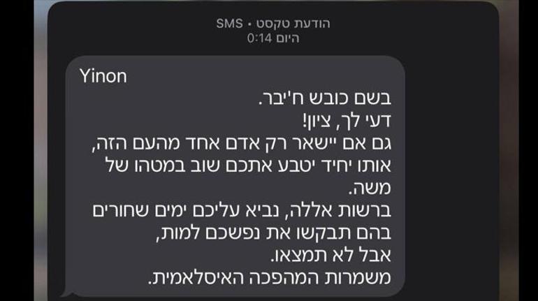 İsrail’de binlerce kişinin cep telefonu aynı anda gelen bir kısa mesajla titredi. İbranice yazılan ve dikkat çekici içeriğe sahip olan mesaj, kısa sürede ülkede tedirginliğe yol açtı.